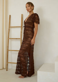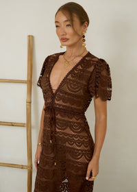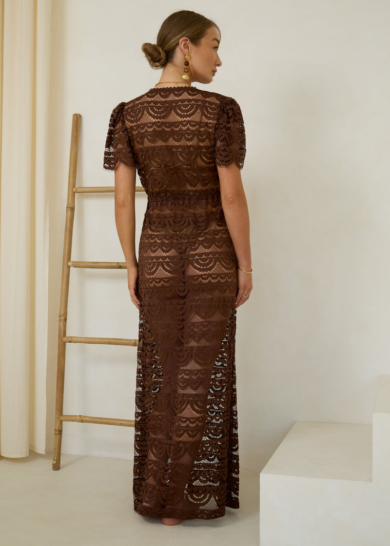 Lace Maxi Kaftan Porto in Espresso