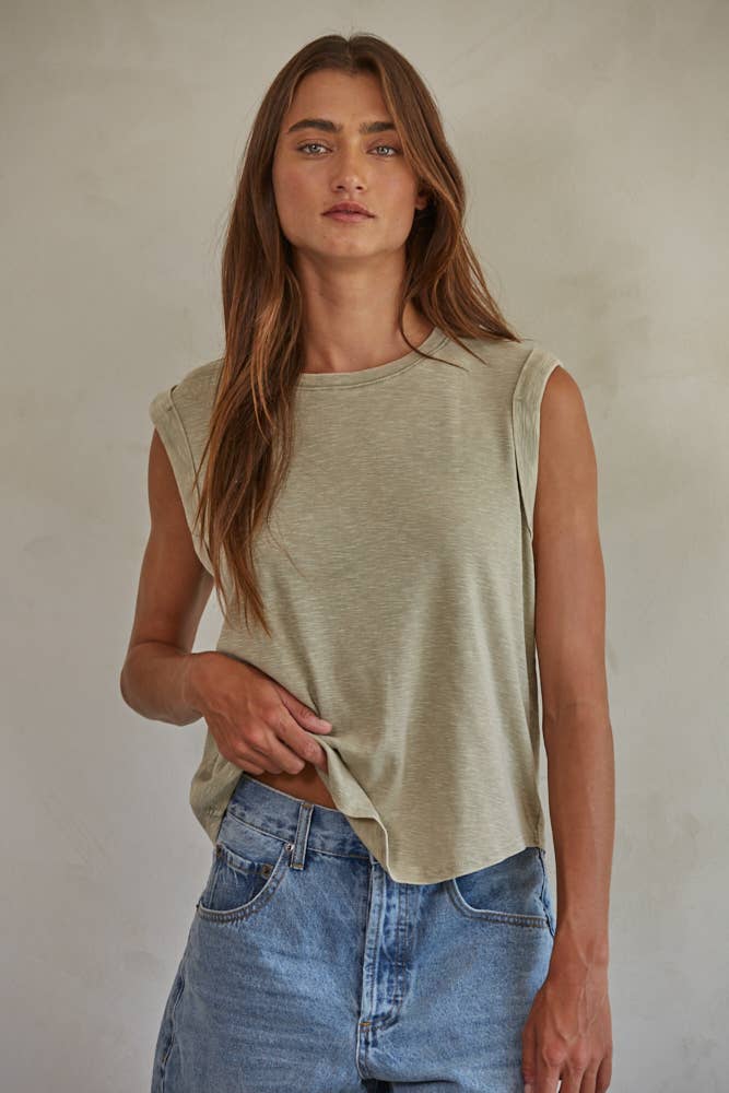 By Together Knit Garment Dyed Polyester Cotton Sleeveless Top