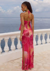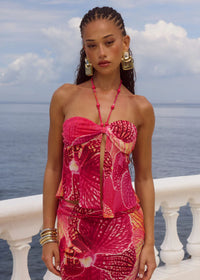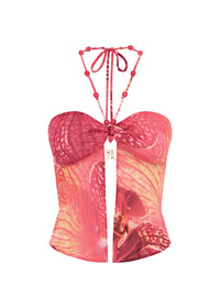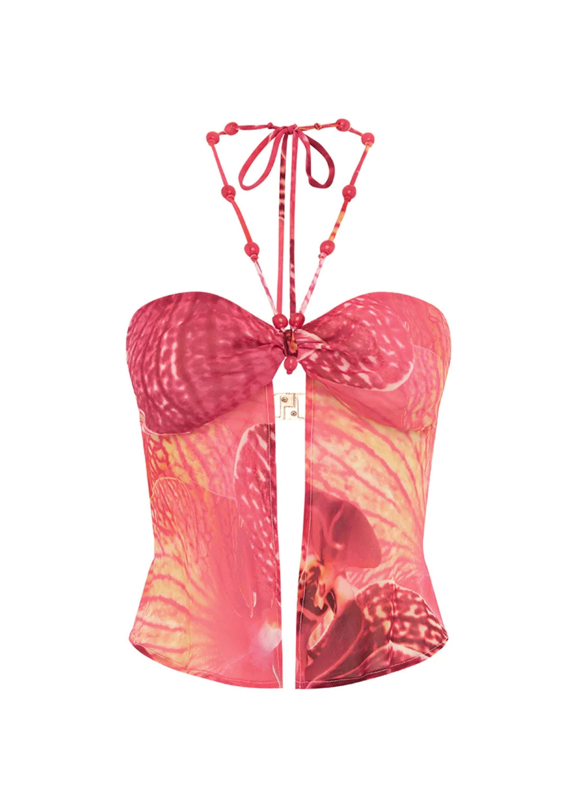 A flowing silhouette with beads and a bright, feminine orchid print, our Brandy Top is the perfect to bring out your feminine energy, pair with our Brandy Maxi Skirt for the complete look.