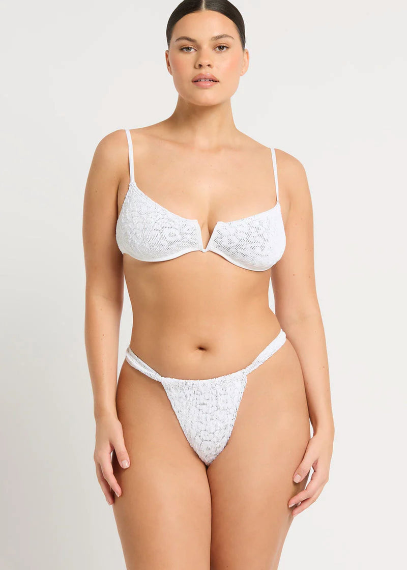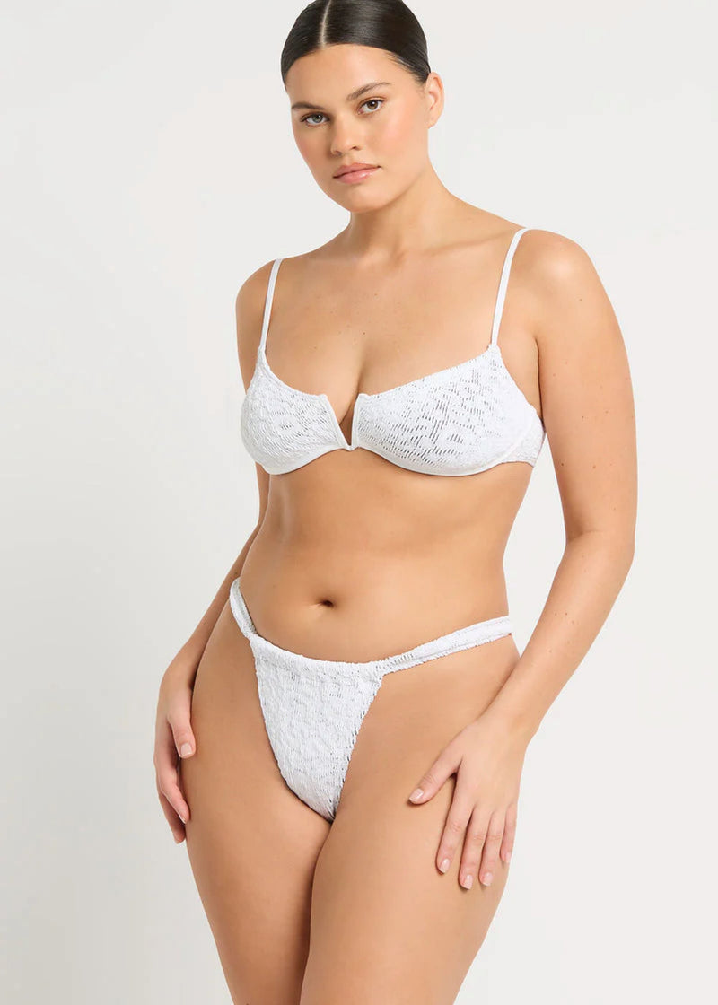 Introducing the Nora Balconette, handcrafted in Australia from The Authentic Crinkle™. This style features a flexible underwire and a front v hardware detail, blending comfort with unparalleled support for bust sizes A-D.