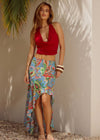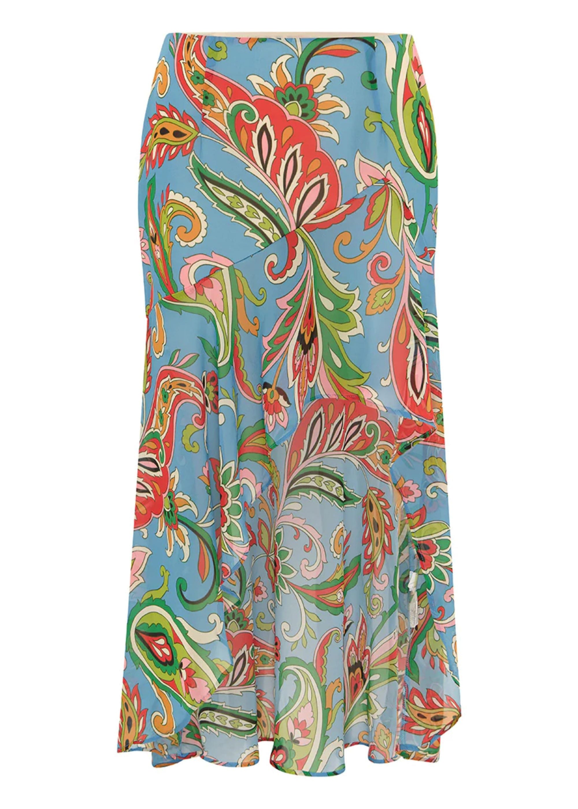 An asymmetrical hemline, sitting low waisted in a paisley print, our Juna Midi Skirt will give you that Carrie Bradshaw feel, pair with our Juna Top for the complete look.