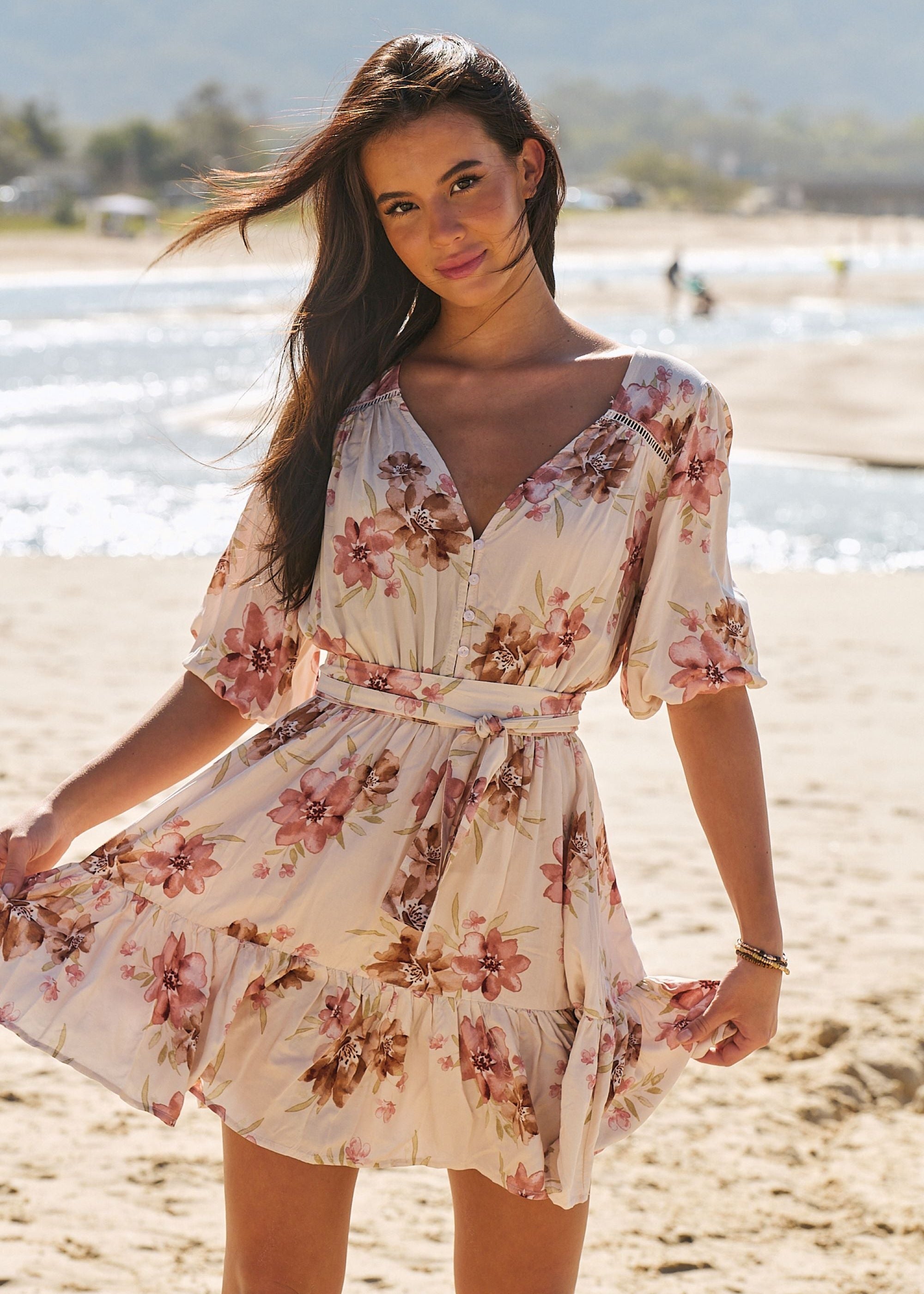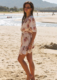 Jaase mini frill dress Dahlia in Love Story print.