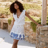 The Sundress is detailed with a simple frill neckline and drawstring shoulder ties. The lose A Line silhouette give a free and easy fit.