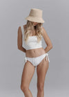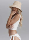 Crafted from hand crochet raffia in a textural ‘pineapple stitch’, the Reef Bucket exudes laid-back charm. The perfect companion for lazy days spent lounging on sandy shores or exploring coastal hideaways.