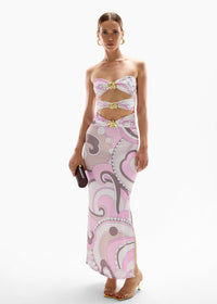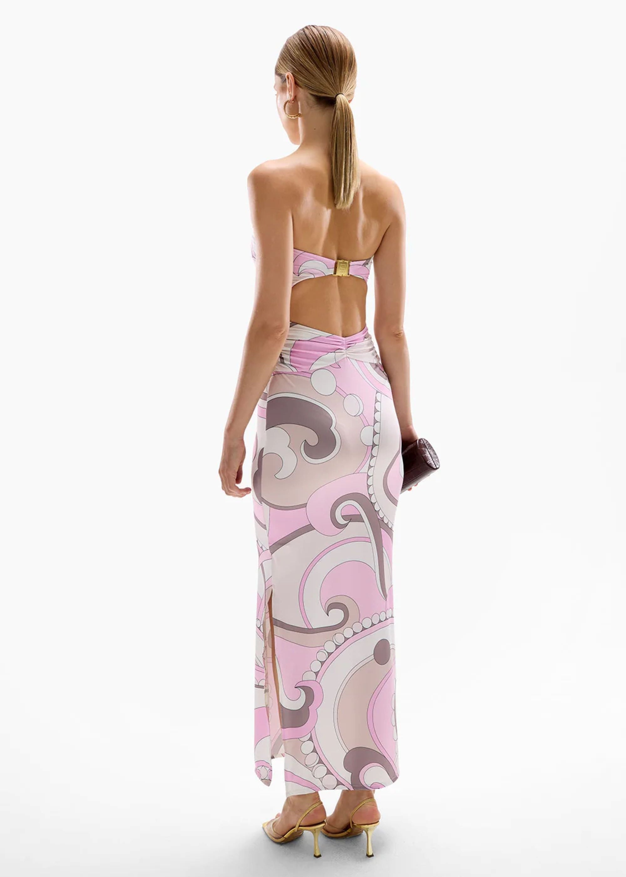This style is cut in 'Antibes' print, a swirling retro-graphic motif of lush pastels.