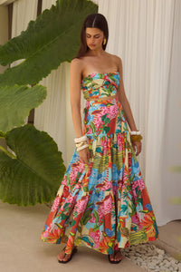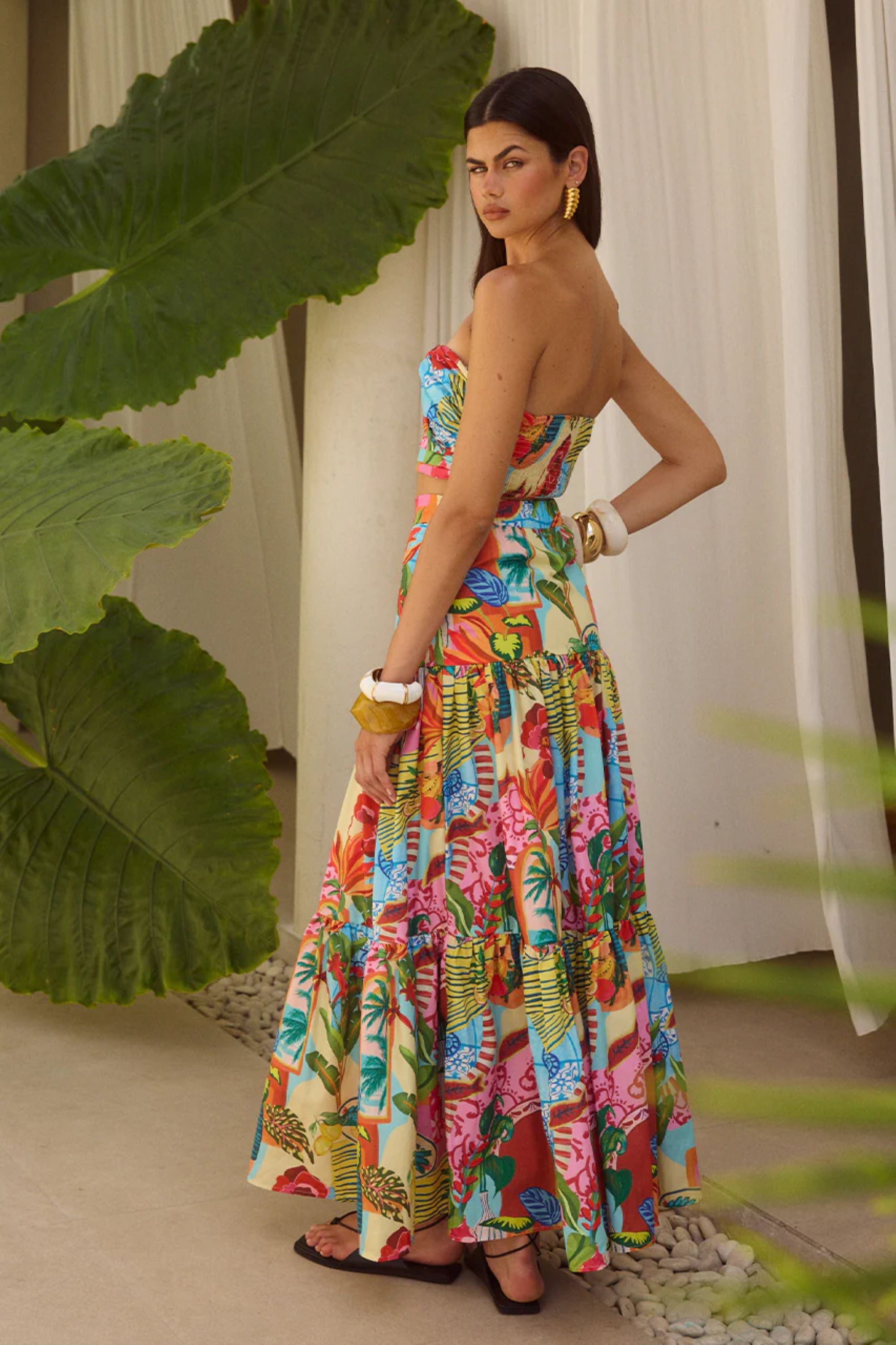 Maxi Skirt is a hoop skirt with a maxi length, an invisible side seam zipper, elastic in the back waistband, not lined.